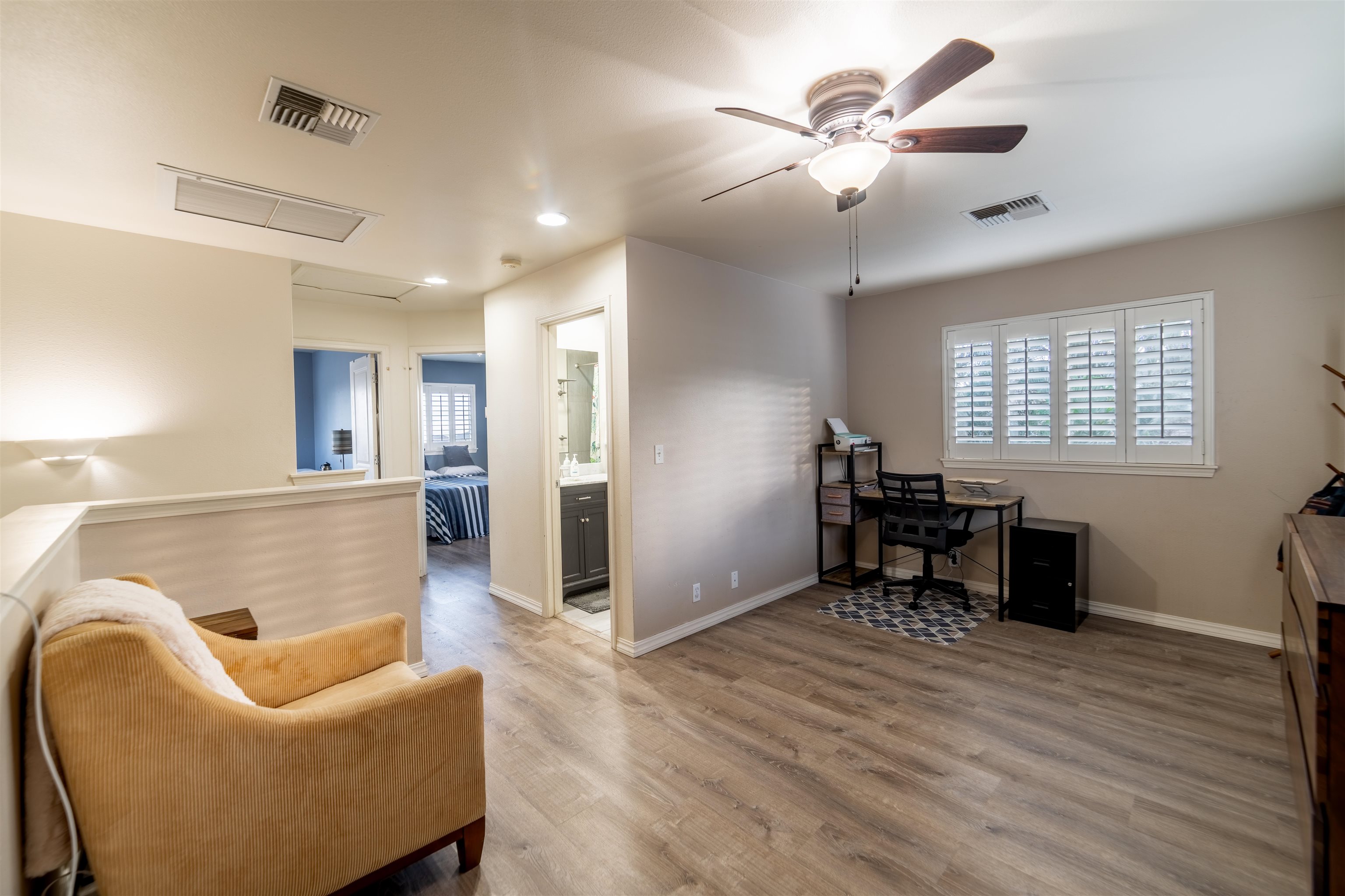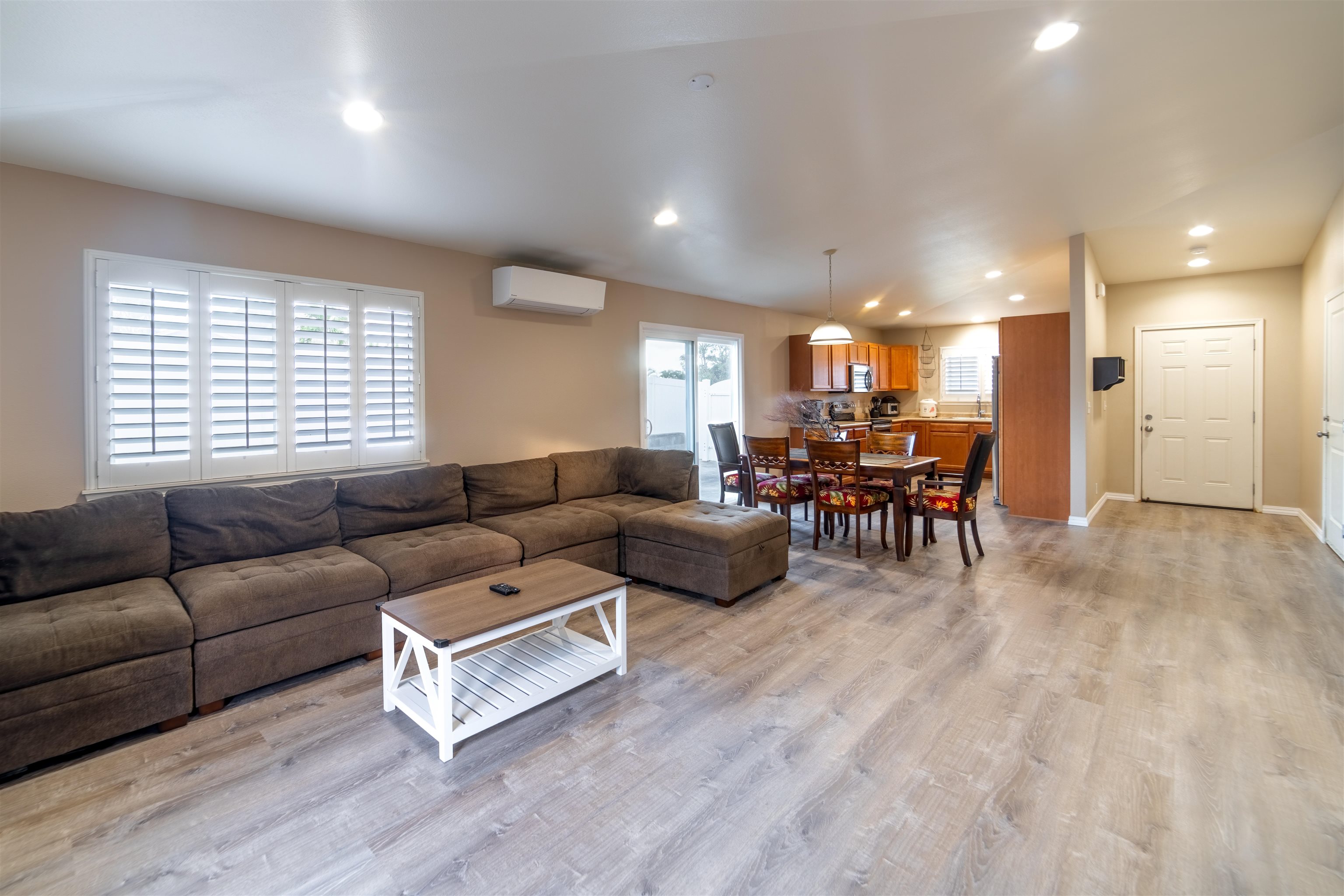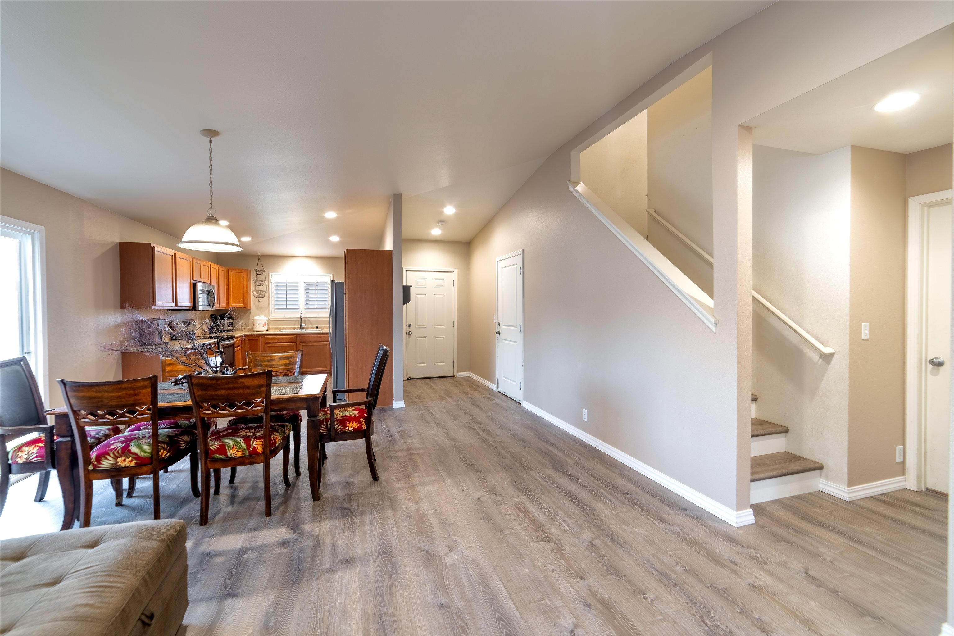 Beautifully Updated Corner Lot Home in Desirable Waikapu Gardens Discover this thoughtfully designed two-story home on a desirable corner lot in the sought-after Waikapu Gardens community. Freshly updated with brand new luxury vinyl plank flooring throughout and fresh interior paint, this move-in ready residence combines flexible living spaces with sizeable outdoor areas and sustainable energy features. The main level centers around an open-concept great room with vaulted ceilings that seamlessly connects the kitchen, dining, and living areas. Two sliding glass doors open directly to the back & side yards, creating an effortless indoor-outdoor flow perfect for Hawaii living and entertaining. The ground floor primary suite offers true convenience with its own ensuite bathroom featuring a unique wet bar and separate entrance--ideal for those who prefer single-level living. A half bathroom on the main floor provides added convenience for guests. Upstairs, you'll find two spacious guest bedrooms and a full bathroom, along with a large bonus room that offers incredible flexibility. Previous owners have used this versatile space as both a guest bedroom and home office, but it could easily serve as a media room, playroom, or additional living area. Modern comfort meets sustainability with a combination of central AC and split AC units throughout, along with 16 owned, net-metered photovoltaic solar panels that significantly reduce electric bills. Recently renovated bathrooms, recessed lighting, stainless steel appliances, and plantation shutters add refined touches throughout the home. The home's outdoor spaces are equally impressive. Expansive, well-maintained yards provide ample room for recreation, gardening, or relaxation while taking in stunning mountain views. The previous owner even utilized the space for a large batting cage! The concrete side yard features double gate access, offering excellent options for additional parking, secure storage, or an extended outdoor entertaining area. A charming terraced garden in the backyard features a tangerine tree, Tahitian lime tree, ti leaf plants, and rose bushes--perfect for gardeners and those who love fresh citrus. Waikapu Gardens is known for its strong sense of community and family-friendly amenities. The holiday season is especially festive in this subdivision. Enjoy the neighborhood walking path, community playground, and appreciate the convenient location with quick access to shopping, medical facilities, schools, parks, and essential services.